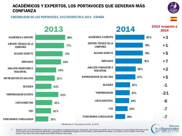 Como recuerda Cristina Aced, hay otra influencia que va de la mano de la autoridad. Se refiere sólo a un contexto o sector y durante un periodo delimitado. Aunque limitados como el resto de los seres humanos, los reconocidos como expertos e independientes de presiones ayudan a esclarecer los horizontes y criterios de referencia en el conocimiento social y la opinión pública. En el gráfico superior una evaluación de los profesionales más creíbles en España. La reputación que acompaña a su conocimiento o capacidad de innovación debe reunir unas altas cualidades comunicativas como las que detalla Benito Castro.